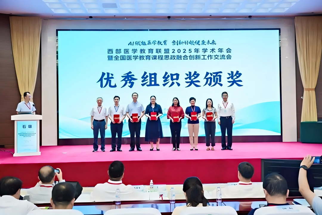 颁奖环节,共有16所医学院校的19篇论文被评为“西部医学教育联盟2025年学术年会优秀征文”,近百所院校的400份案例获得“首届医学教育课程思政案例大赛”奖。其中,一等奖20名、二等奖40名、三等奖80名、优秀奖260名、优秀组织单位10家。我校共有12篇论文获优秀征文奖。其中,二等奖1名、三等奖1名、优秀奖10名,同时我校获得优秀组织单位奖。